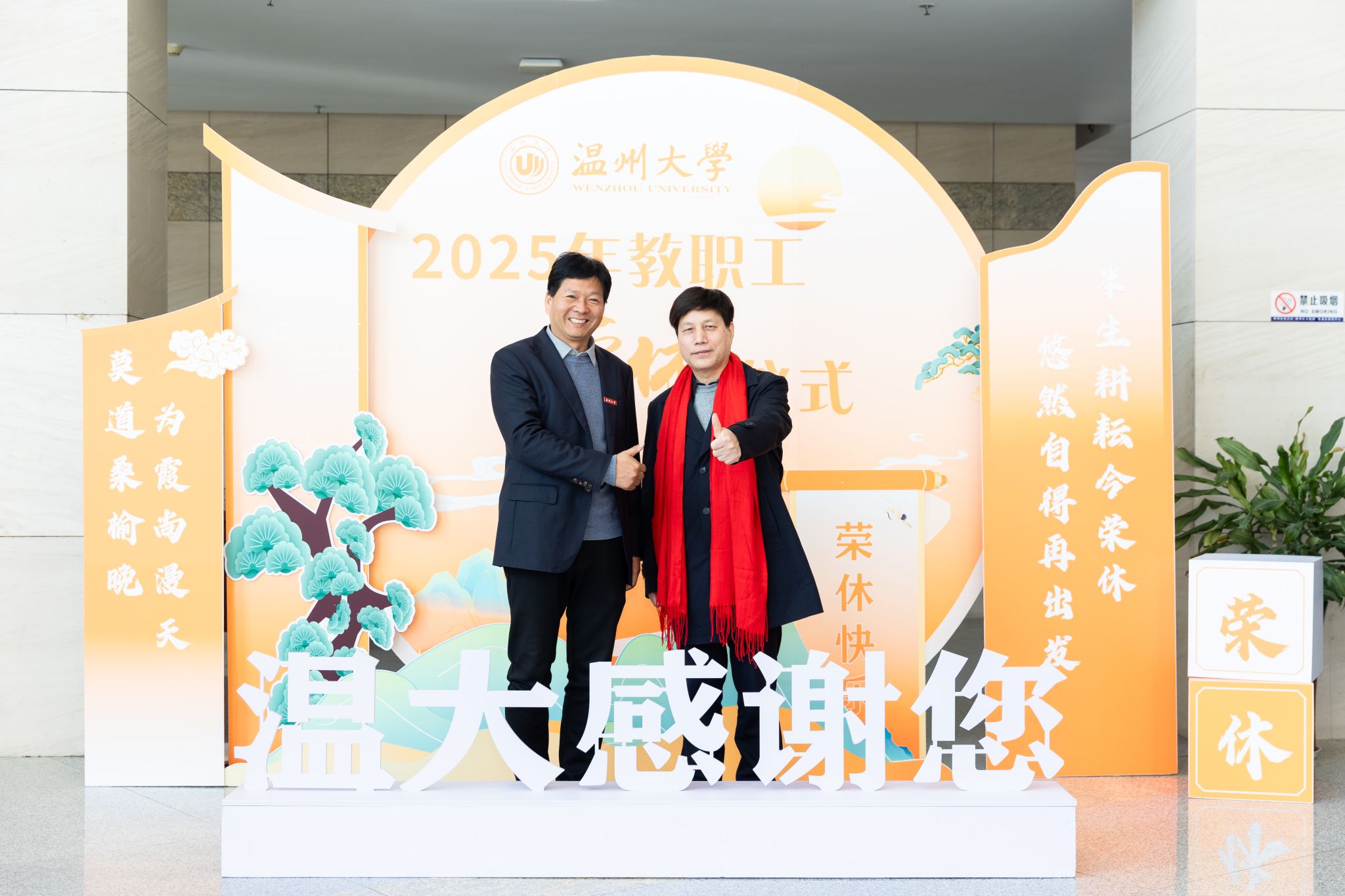 2026年1月13日,“温大感谢您”温州大学2025年教职工荣休仪式在岩松堂白鹿厅隆重举行。20多位2025年荣休的教职工齐聚现场,党委书记钱强,党委副书记庄兴忠,党委委员、组织部部长夏春雨等校领导出席荣休仪式。党校办、人事处、离退休工作处、工会等相关职能部门负责人,以及荣休教职工原工作单位负责人等近30人参会。校党委副书记庄兴忠主持仪式。