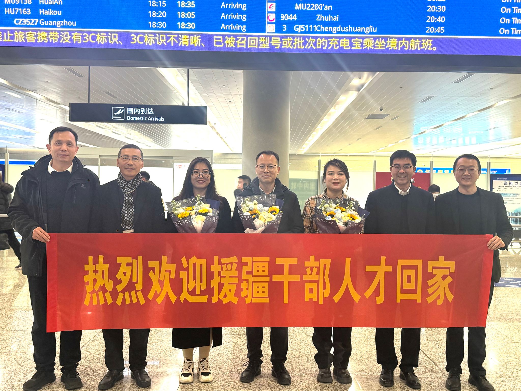 2026年1月15日晚,我校援疆教师孔庆鸽、韩磊2位老师圆满完成援疆任务返校,援疆辅导员靳颖随同返校。人事处副处长王中对和数理学院党委书记陈兴桂、机电学院副院长朱德华、苏步青学院党总支书记潘从义等援疆老师所在学院领导到龙湾机场迎接他们。