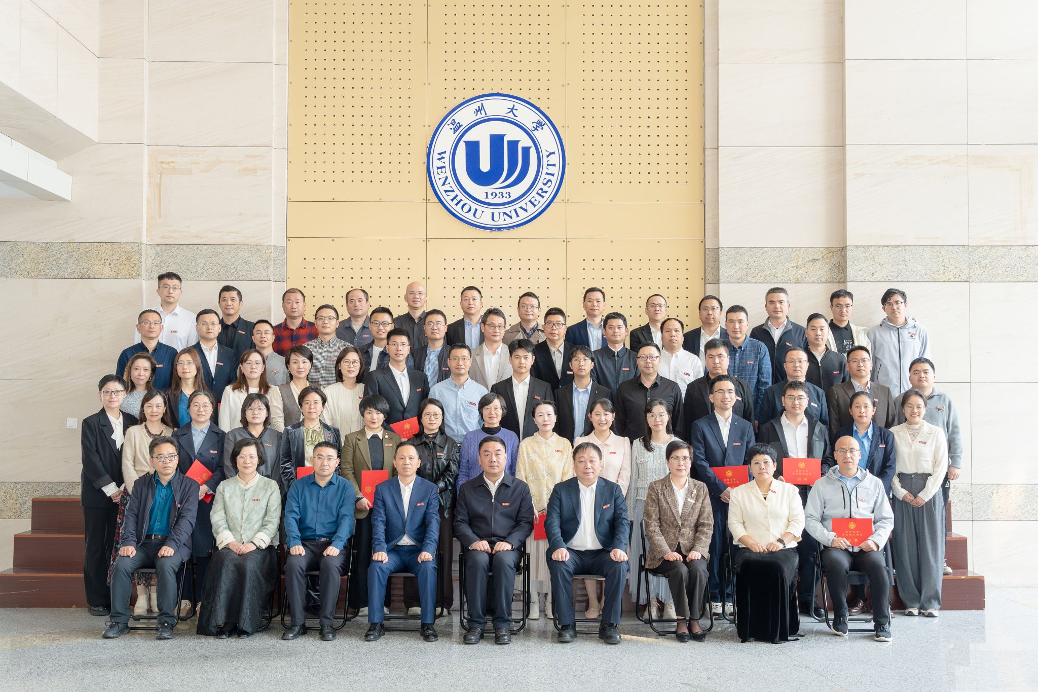 聘任仪式上,赵敏校长宣读温州大学2025年专业技术职务聘任文件,为新晋高级专业技术职务教师逐一颁发证书并合影留念,以庄重仪式传递学校对新晋职称教师的重视与礼遇,强化教师职业身份认同与岗位使命担当。